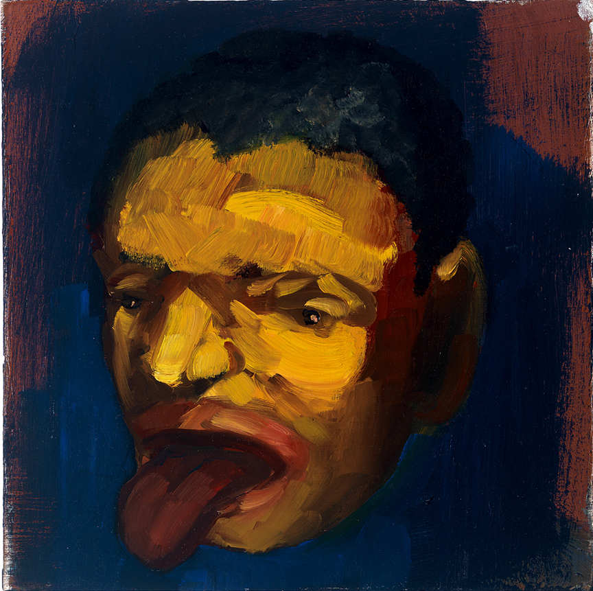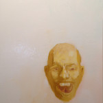 I never really had an idea of what this picture was supposed to be.  It has been a variety of heads over time. It’s been too many colors; the flesh tones have gotten progressively bloodless over the time I painted it.  It’s been sanded a couple of times, by hand and with a power sander.  I had way too much paint on it for a while and the ridges and history of the dried paint sometimes got in the way of the track of the brush.  The dried paint forced me to make the same decisions over and over.  When I sanded some of the paint off, I made an effort to keep the image.  Sometimes I could and sometimes I would just paint over everything and cry.