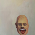 I thought he might be blind.  I painted his eyes and then I thought he might be blinking or winking.  I thought he might not want to see what he was seeing.  I thought his mouth might be a sign of life, bloody, vibrant.  A dead head with a living mouth.  I thought he was somewhere between the lusty and the dead.
