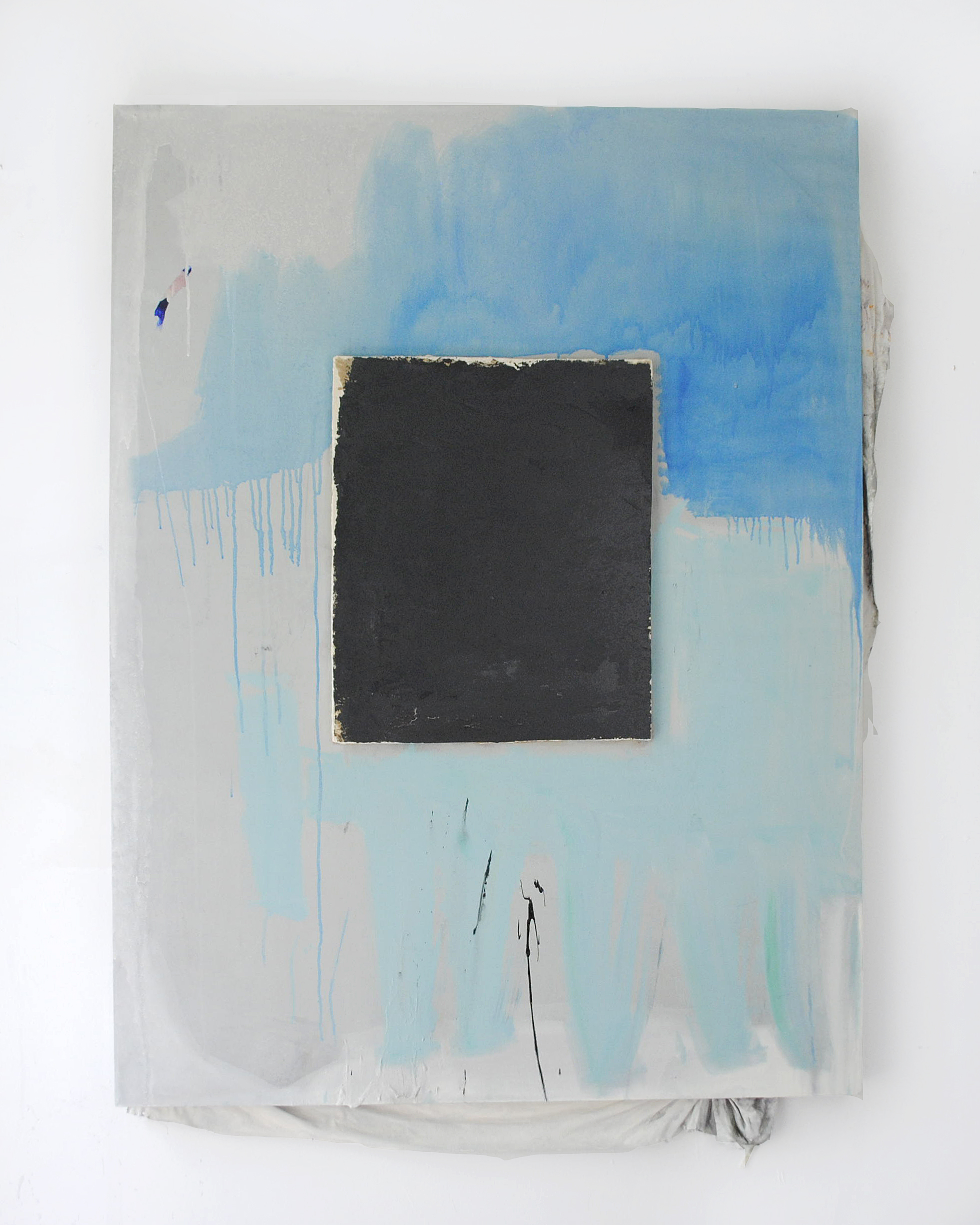 SL: I really loved Corresponding Selves at Dodge Gallery. I think that the paintings were really powerful not just individually but as a group. One of the things that really stood out for me in this show was the way that you handled materials as carriers of formal and emotional information. Fabric didn’t just hold paint, it actually became a painterly gesture in itself, for example. The portrait orientations and the title of the show made a connection to portraiture and each painting seemed to have a separate identity but in the aggregate the show felt like the expression of a larger consciousness. It was really great to see abstract painting that had something to do with painting AND with life. I kept thinking about the passage of time as well as scars, marks, bandages, stains, fluid, support, and all sorts of deeply body-related metaphors that have been all but banished from discussion abstraction in contemporary discussion of art.